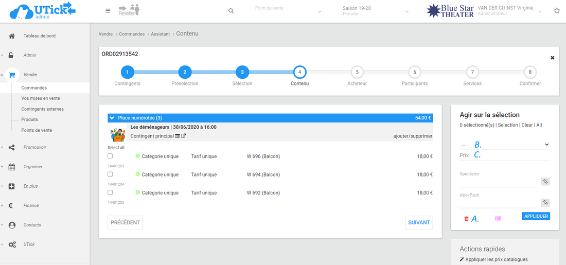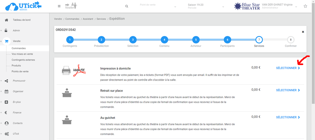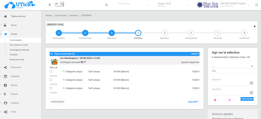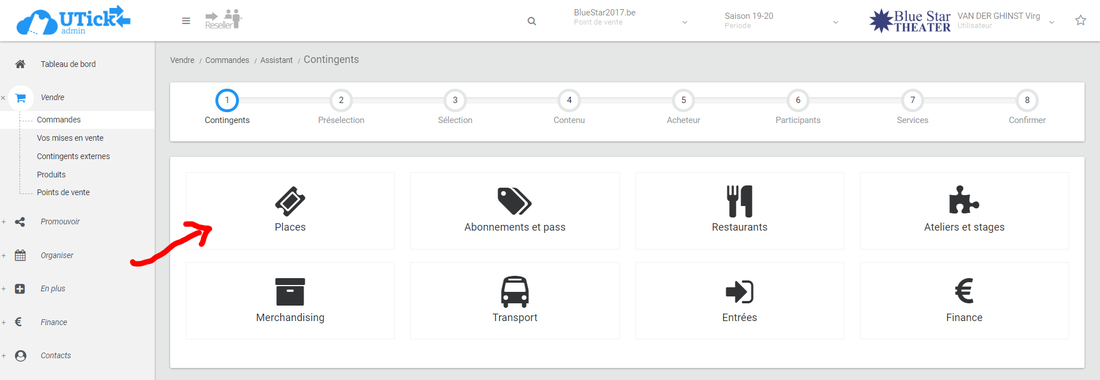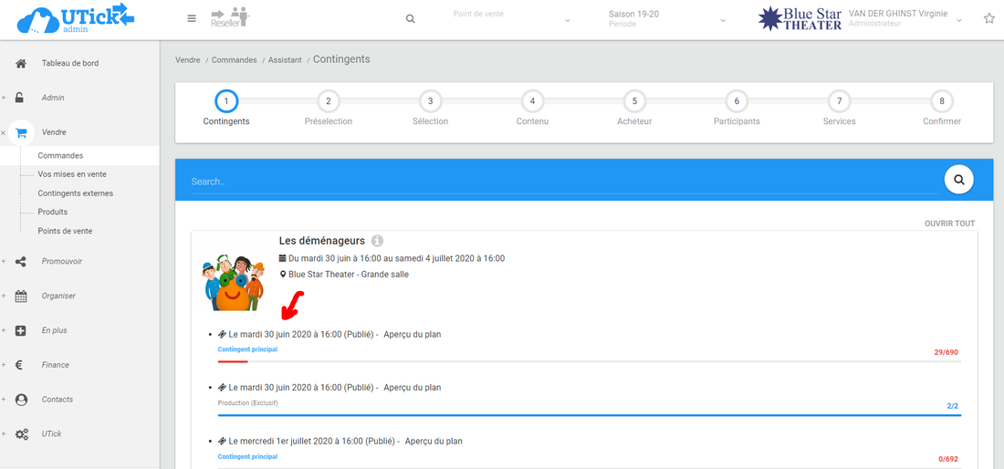 Cliquez sur "1 Contingents" de l'assistant de commande et réitérez les étapes ci-dessus pour le spectacle à ajouter