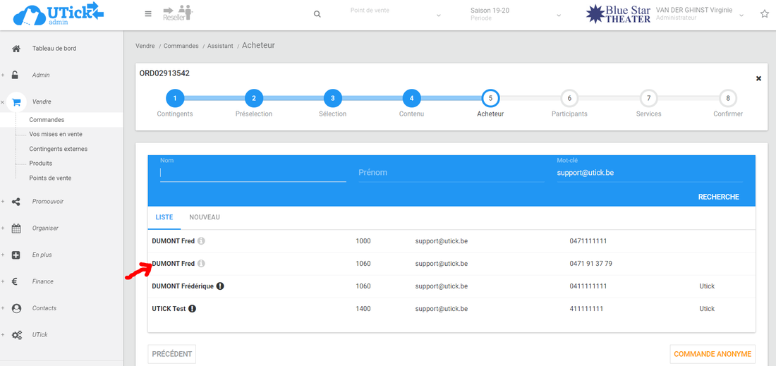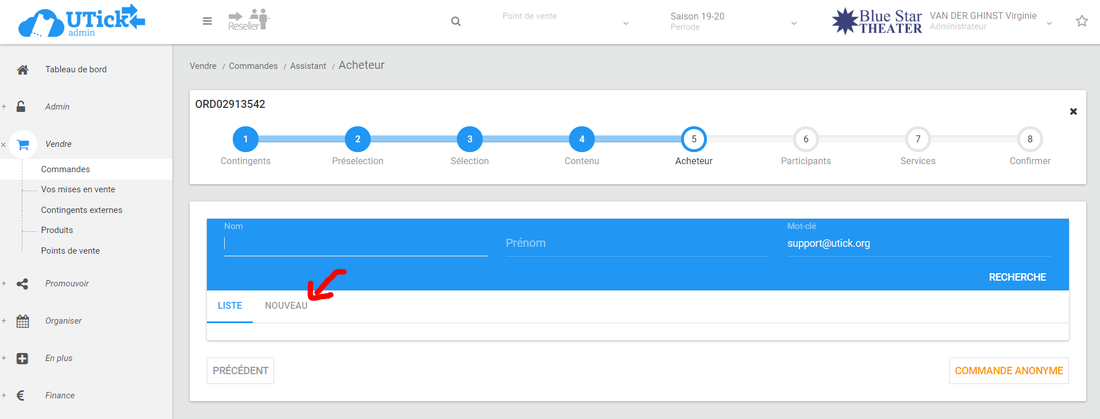 Cliquez sur l'onglet "NOUVEAU" et créez directement la fiche spectateur.