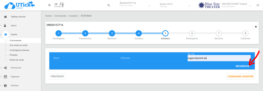 Cliquez sur "RECHERCHE"image.png 118.96 KBSélectionnez votre spectateur et cliquez sur "ENREGISTRER" (ou directement sur "COMMANDE ANONYME" si c'est le cas).