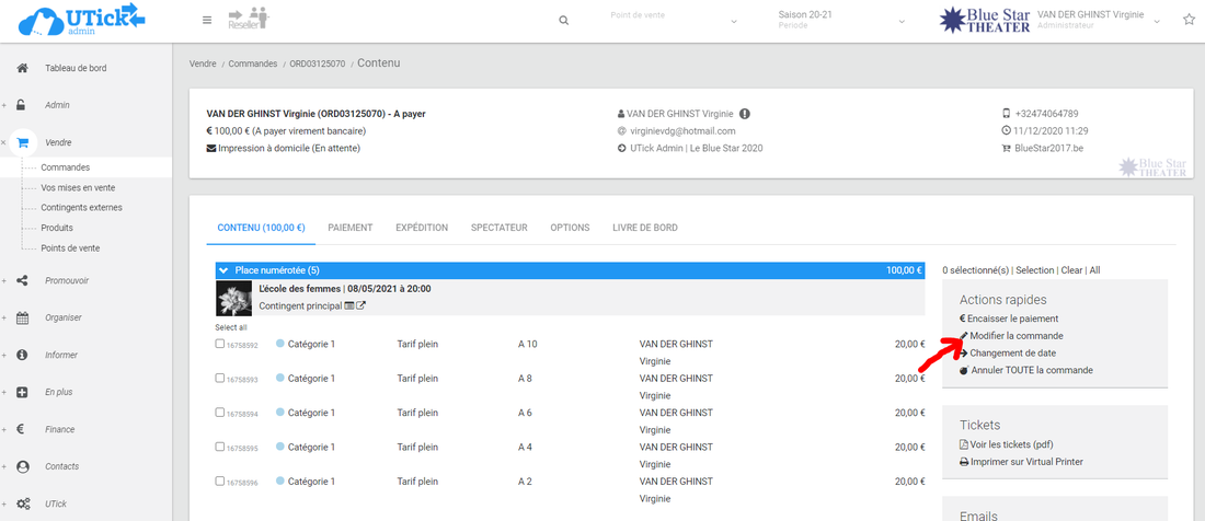 Entrez sur la commande et cliquer sur "Modifier la commande" dans le cadre "Actions rapides" qui se trouve à droite.