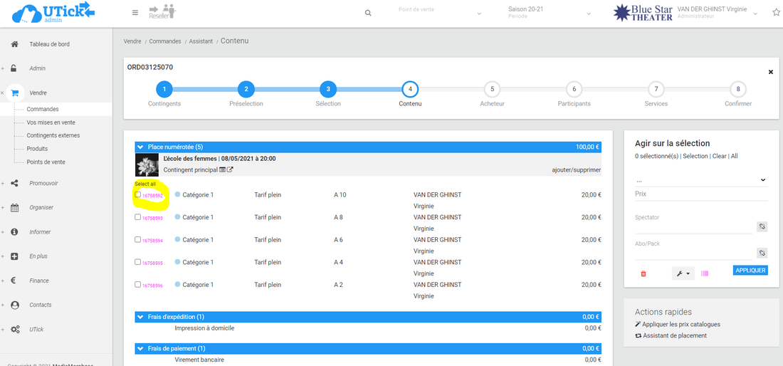 Cochez la ou les places à scanner et, dans le cadre "Agir sur la sélection à droite", cliquez sur le code barre rose.
