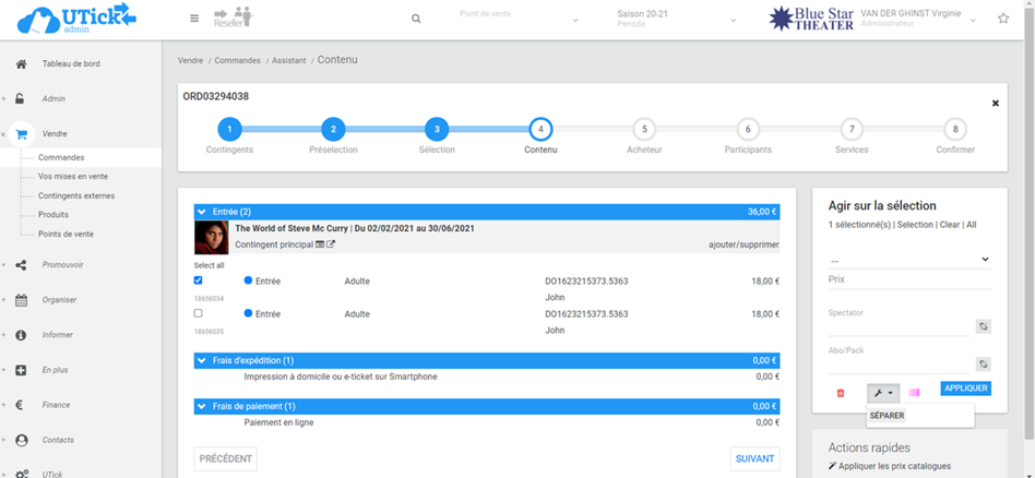 Il permet de séparer des produits d'une commande pour les mettre dans une nouvelle commande.
