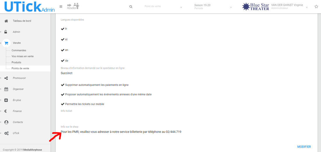 Vous avez la possibilité d'ajouter une information générale qui apparaîtra sur votre shop, au moment du choix des tickets ;