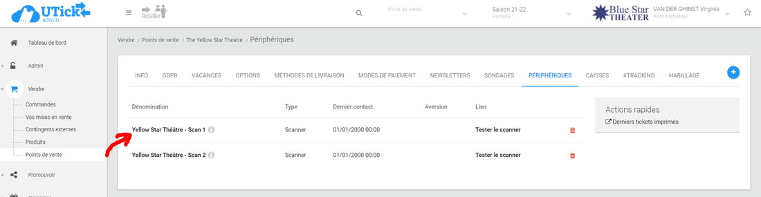 Rendez-vous dans Vendre > points de vente, cliquez sur le point de vente sur lequel se trouvent vos scanners et cliquez sur l'onglet "PERIPHERIQUES".