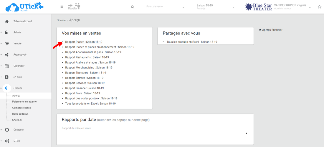 Rendez-vous dans Finance > Aperçu. Sélectionnez la bonne saison et cliquez sur "Rapport de place : saison XX - XX".