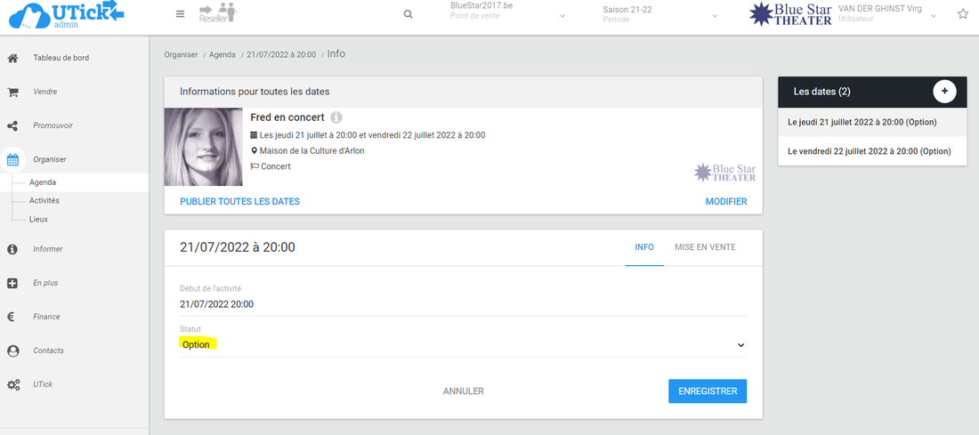 Pour cela, utilisez le calendrier à droite ou tapez le titre (ou un mot clé) de votre événement dans la barre de recherche bleue.image.png 321.2 KBCliquez sur le titre de votre événement, la ou les dates avec le statut s'affichent, cliquez dessus.image.png 225.75 KBVous arrivez sur la page de cette date avec toutes les informations relative à celle-ci.