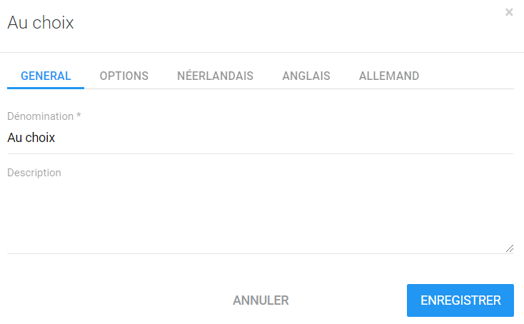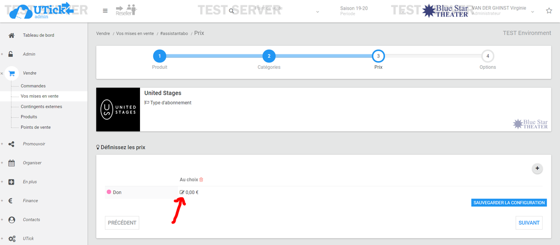 Sélectionnez la catégorie de prix que vous avez encodé précédemment (par exemple : "Au choix »).