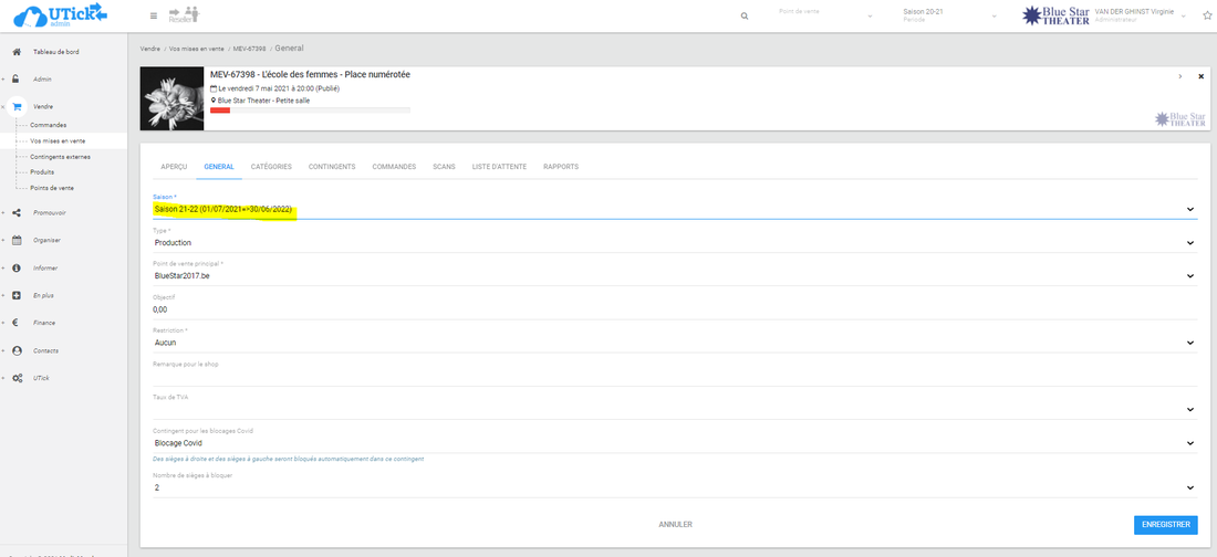 Pour modifier la saison d'une mise en vente, rendez-vous dans Vendre > Vos mises en vente et sélectionnez votre mise en vente.
