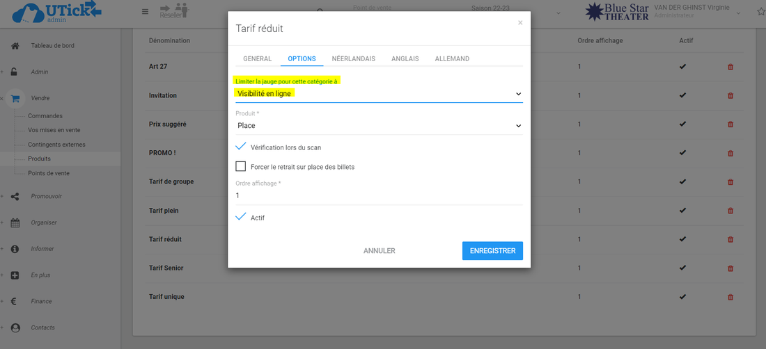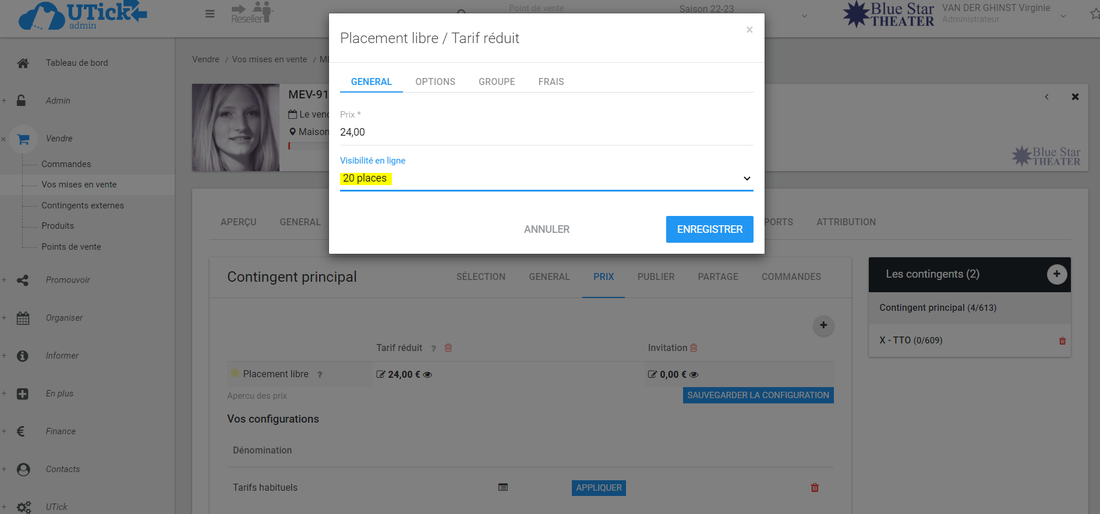Dans Vendre > Vos mises en vente > Lamiseenventeenquestion > CONTINGENTS > PRIX, vous ajoutez ce tarif et indiquez comme visibilité en ligne "20".image.png 188.26 KB