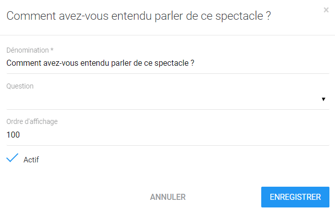 - pour ajouter votre question : indiquez la question sous "dénomination" et cliquez sur "ENREGISTRER".image.png 22.75 KB