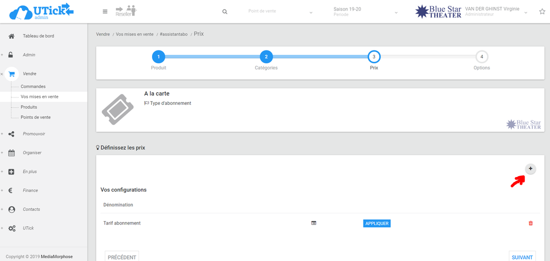 Pour créer une catégorie de prix, cliquez sur le "+" bleu en haut à droite.