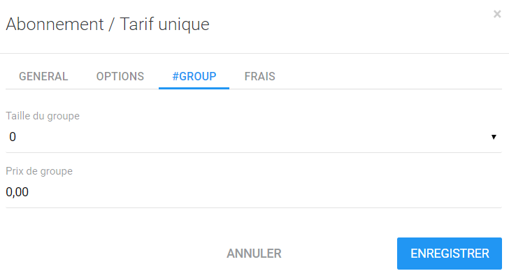 Vous pouvez déterminer ici un tarif de groupe.