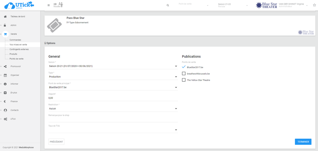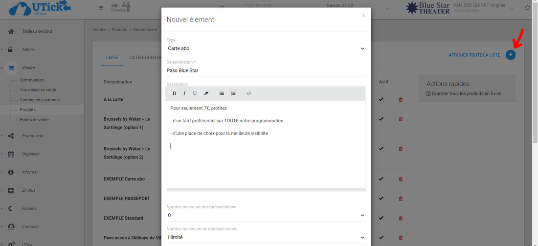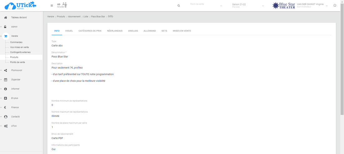 C’est ici que vous allez permettre la visibilité en ligne de l'abonnement et indiquer le prix de la carte abo.