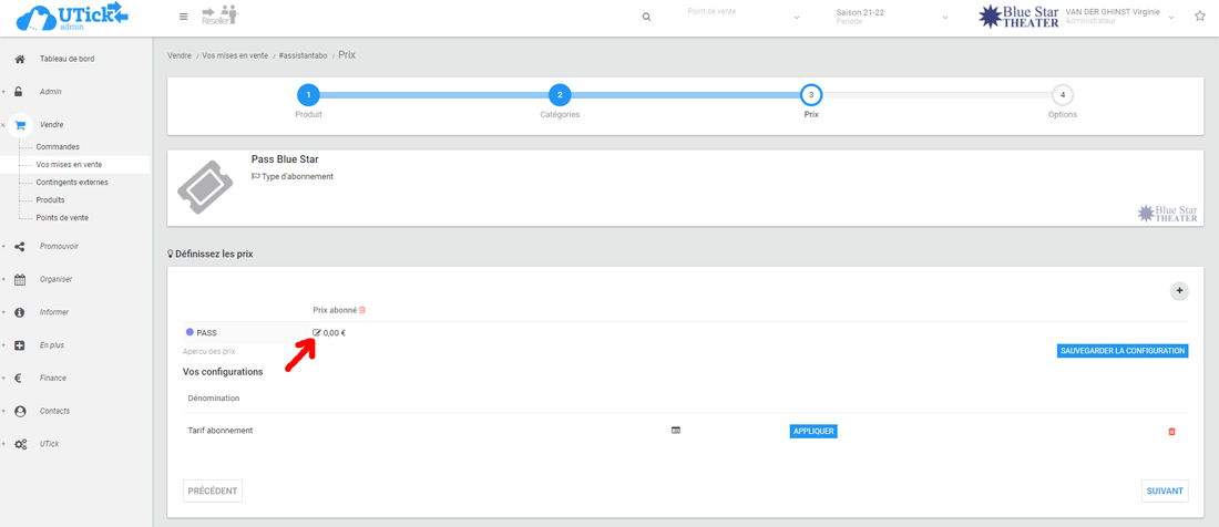 Sélectionnez la (ou une des) catégories de prix précédemment sélectionnée(s) (à l'étape de la création de l'abonnement).