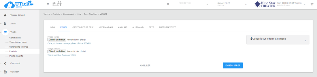Cliquez sur "Choisir un fichier" pour importer le visuel de votre abonnement (format JPG, 800x800)
