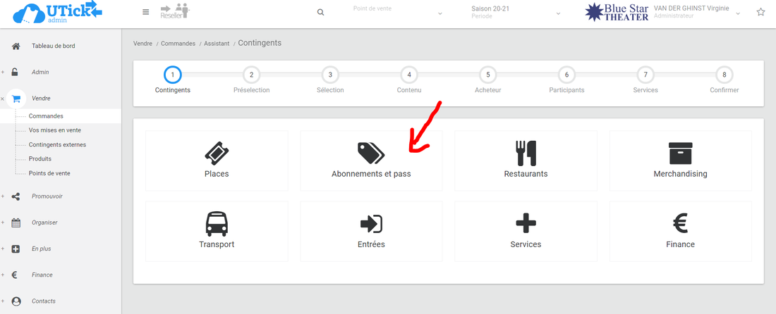 Dans notre exemple, je prendrai 2 abonnements dont le choix des spectacles diffère.