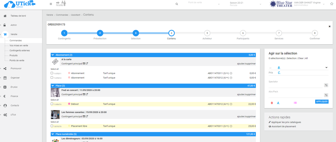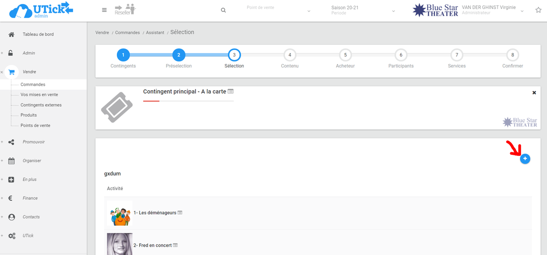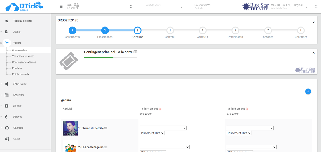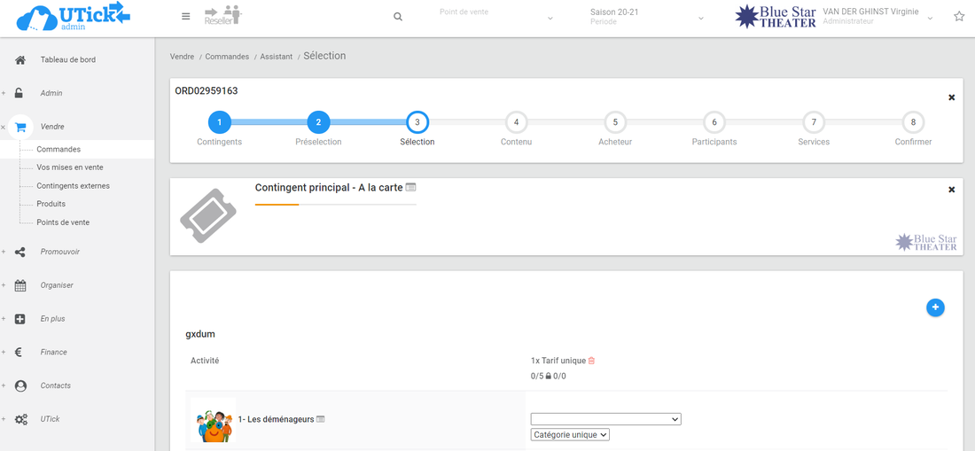 * lorsque vous indiquez un spectacle dans l'abonnement, UTick vous indique le nombre de places libres restantes,