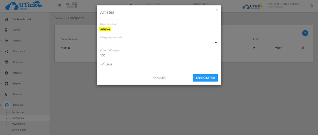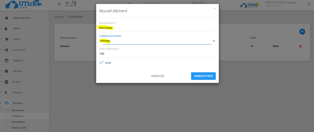 Votre catégorie est désormais disponible sur votre compte UTick et pouvez y assigner les fiches spectateurs que vous souhaitez (uniquement en admin).