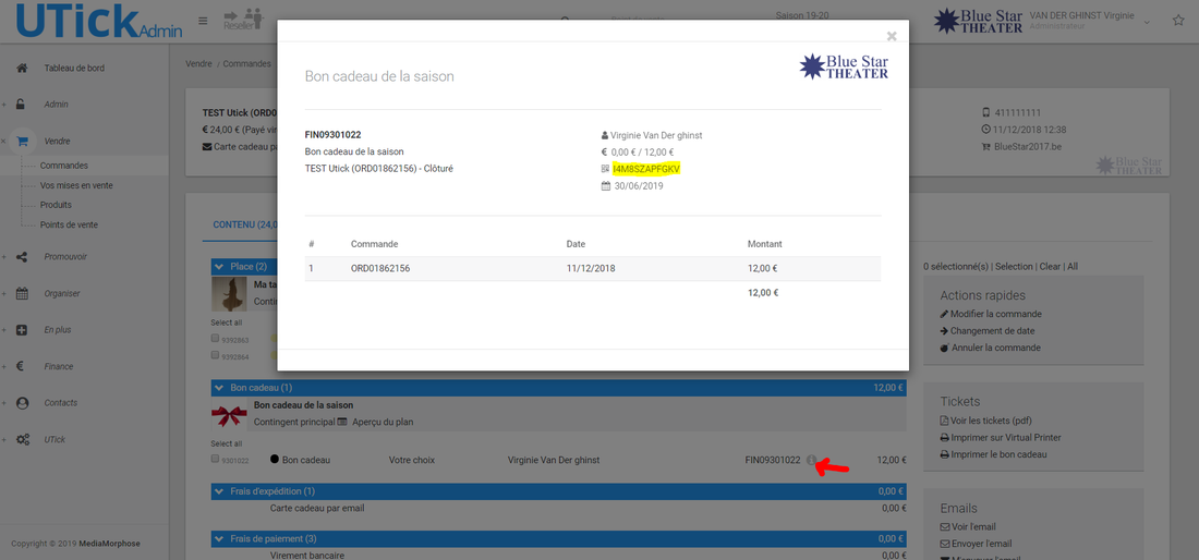 C'est possible sur votre shop en ligne mais également pour vous dans l'admin. Si c'est vous qui passez la commande, demandez à votre spectateur son code cadeau. A toutes fins utiles, voici où le retrouver dans la commande initiale ;