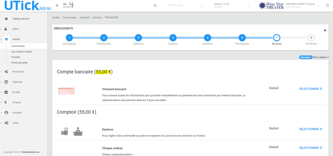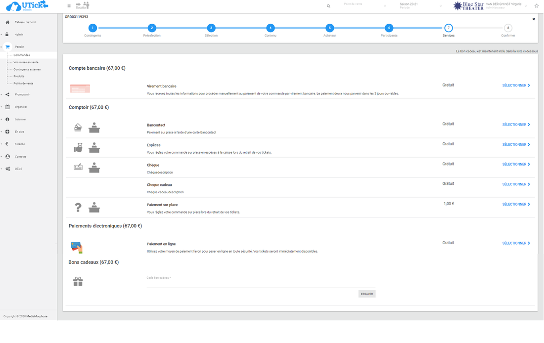 Une fois qu'une commande avec un produit "bon cadeau" est clôturée, vous avez la possibilité de passer des commandes avec ce moyen de paiement.