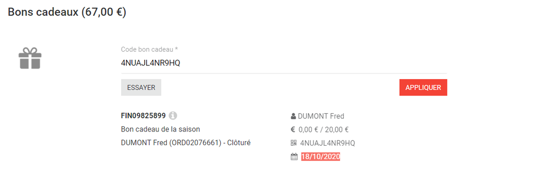 Les détails du bon cadeau s'afficheront. Cliquez alors sur "APPLIQUER" pour l'utiliser.image.png 35.32 KB