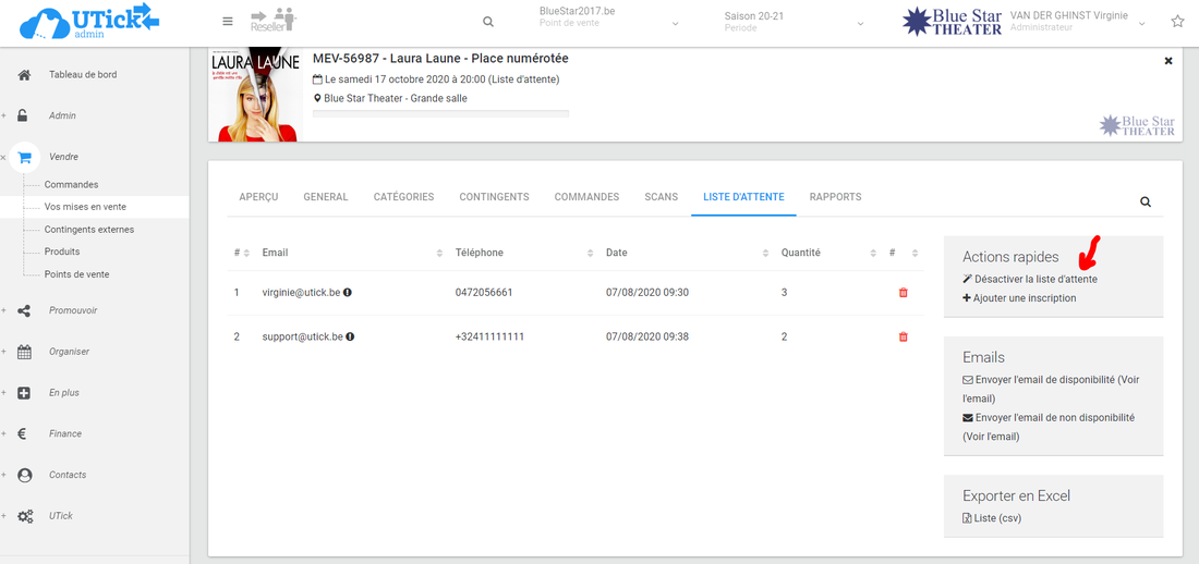 Si vous souhaitez désactiver la liste d'attente en indiquant un autre statut que "Publié", rendez-vous directement dans Organiser > Agenda > Lamiseenventeenquestion et modifiez le statut "Liste d'attente" vers le statut souhaité.