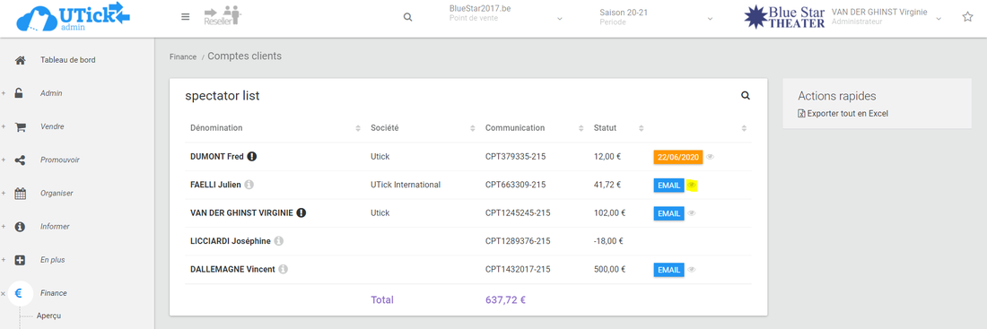 Une fois la commande annulée et remboursée, vous pourrez alors cliquer sur "Envoyer l'email" de la commande en statut "annulé" pour en informer votre spectateur.