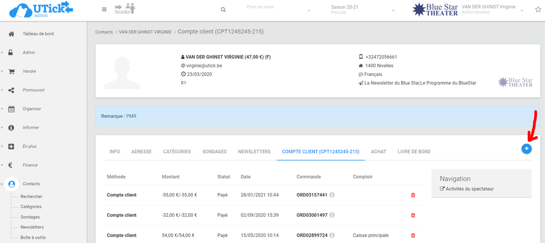 Pour indiquer un remboursement au spectateur, cliquez sur le "+" bleu en haut à droite.image.png 174.76 KBUn pop up s'ouvre, à vous de remplir les champs : image.png 41.33 KB