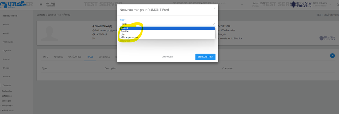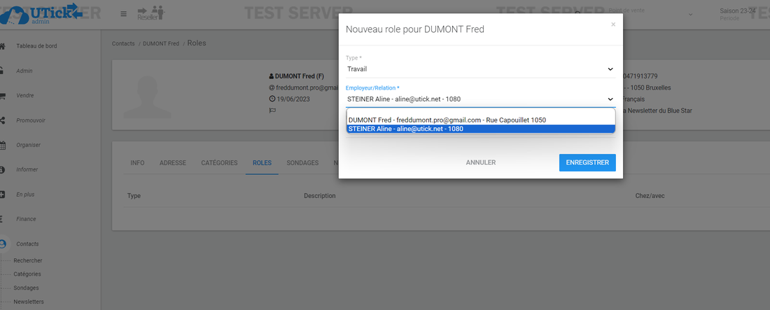 - Même personne : permet de lier deux fiches appartenant à une même personne (permet de renseigner deux adresses mail pour cette personne).