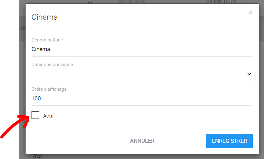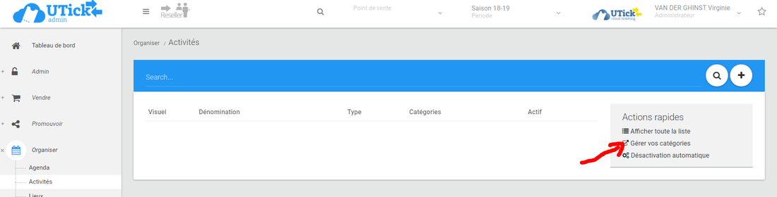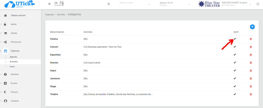 Pour cela, rendez-vous dans Organiser > Activité, cliquez sur "Gérer vos catégories" dans le cadre gris "Actions rapides" à droite.image.png 89.53 KBVous verrez là la liste des catégories d'activité déjà existantes. Vous observez une colonne "Actif".image.png 124.39 KB