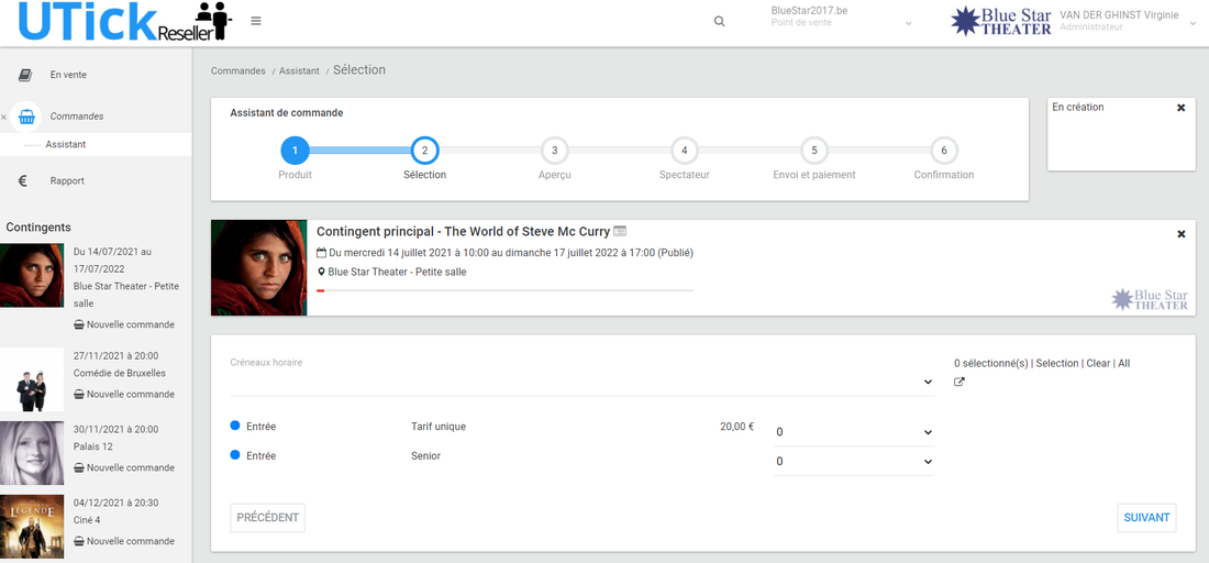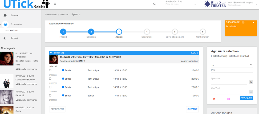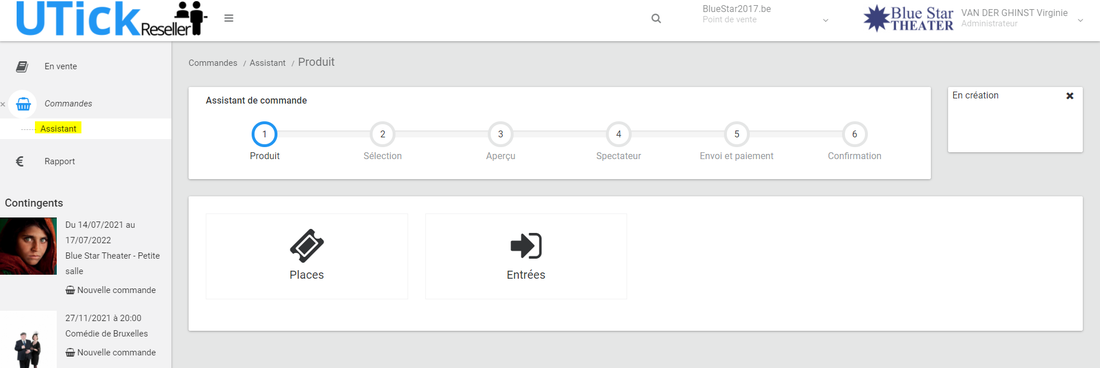 Pour prendre une commande dans le Reseller, vous trouverez dans la barre de navigation latérale uniquement les 5 prochaines mises en vente.*