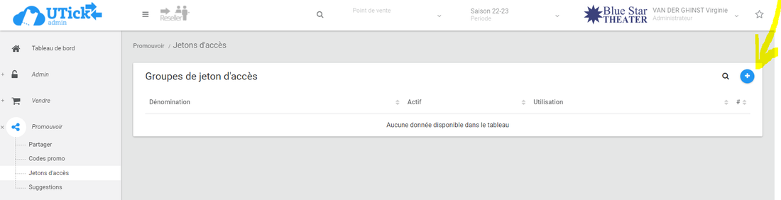 Une fois que c'est fait, un nouvel onglet apparaît : Promouvoir > Jetons d'accès.