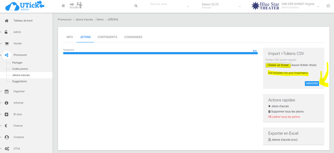 - recherchez sur votre ordinateur le fichier CSV avec la liste des codes (attention, celui-ci doit respecter le template UTick, disponible sur cette même page).