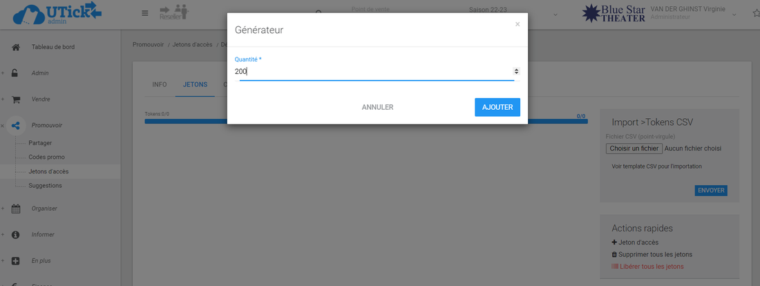 - un pop-up s'ouvre : indiquez la quantité de jetons souhaitée
