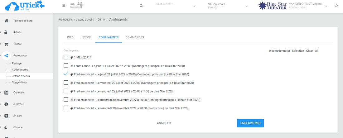 - Cochez le ou les contingents sur lesquels vous souhaitez appliquer votre jeton d'accès*